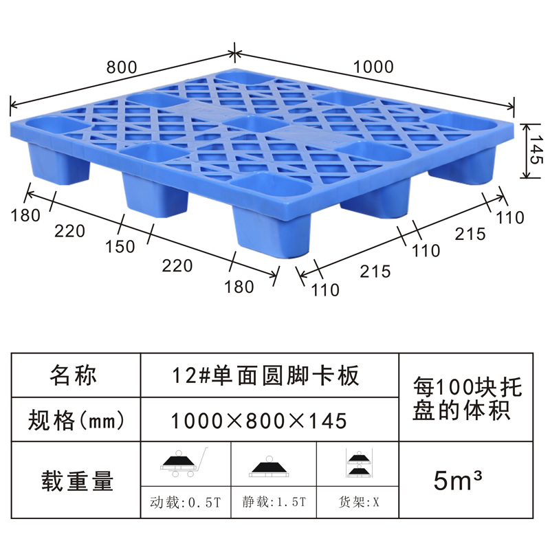 塑料托盤采用全新HDPE材料一次注塑成型,具有良好的抗壓性表面硬度高不易變形,且韌性非常好不易變形,在零下25度至零上65度的惡劣環(huán)境下使用,正常使用壽命可長達6年。
