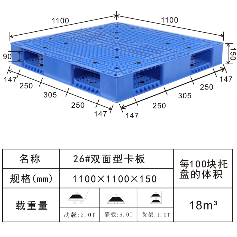 塑料托盤(pán)采用全新HDPE材料一次注塑成型,具有良好的抗壓性表面硬度高不易變形,且韌性非常好不易變形,在零下25度至零上65度的惡劣環(huán)境下使用,正常使用壽命可長(zhǎng)達(dá)6年。