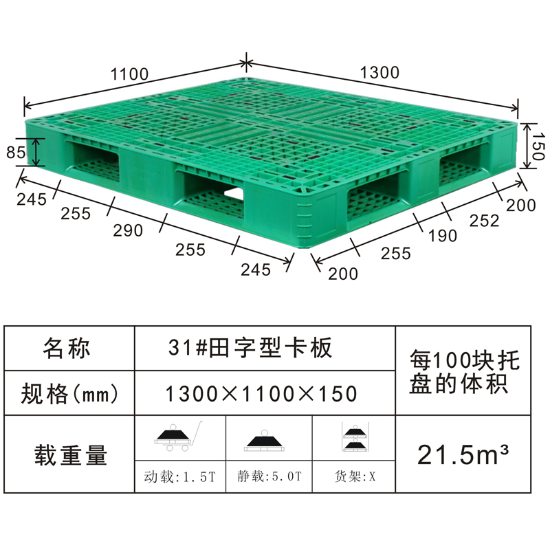 塑料托盤采用全新HDPE材料一次注塑成型,具有良好的抗壓性表面硬度高不易變形,且韌性非常好不易變形,在零下25度至零上65度的惡劣環(huán)境下使用,正常使用壽命可長達6年。