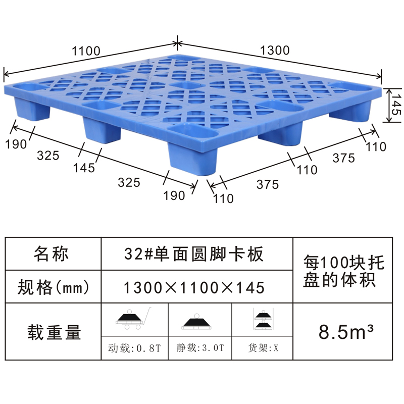 塑料托盤采用全新HDPE材料一次注塑成型,具有良好的抗壓性表面硬度高不易變形,且韌性非常好不易變形,在零下25度至零上65度的惡劣環(huán)境下使用,正常使用壽命可長達(dá)6年。