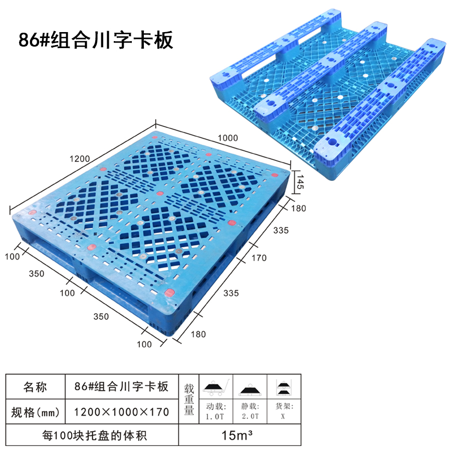 材料 | PP,PE,其他 | 型式 | 四面進(jìn)叉 | 適用范圍 | 化工廠、飲料廠、啤酒廠專用托盤 | 尺寸 | 1200×1000×170 | 靜載 | 2T | 類型 | 川字 | 百個(gè)數(shù)量體積 | 15m3 | 貨架 | X |